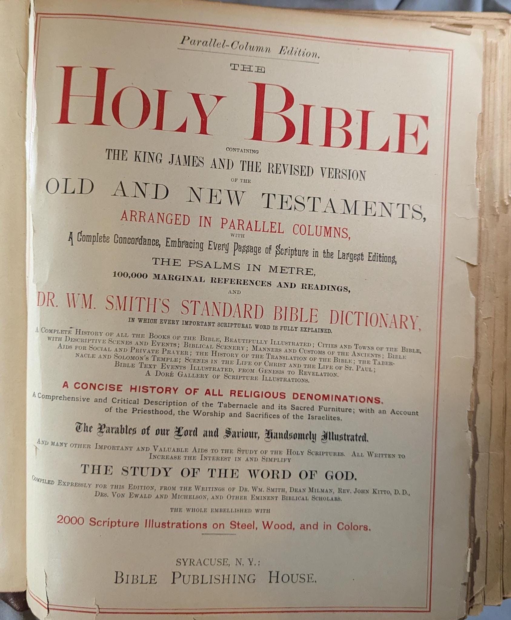 Antique Embossed Leather Holy Bible 1886 Clasps Illustrated Color Parallel Edition