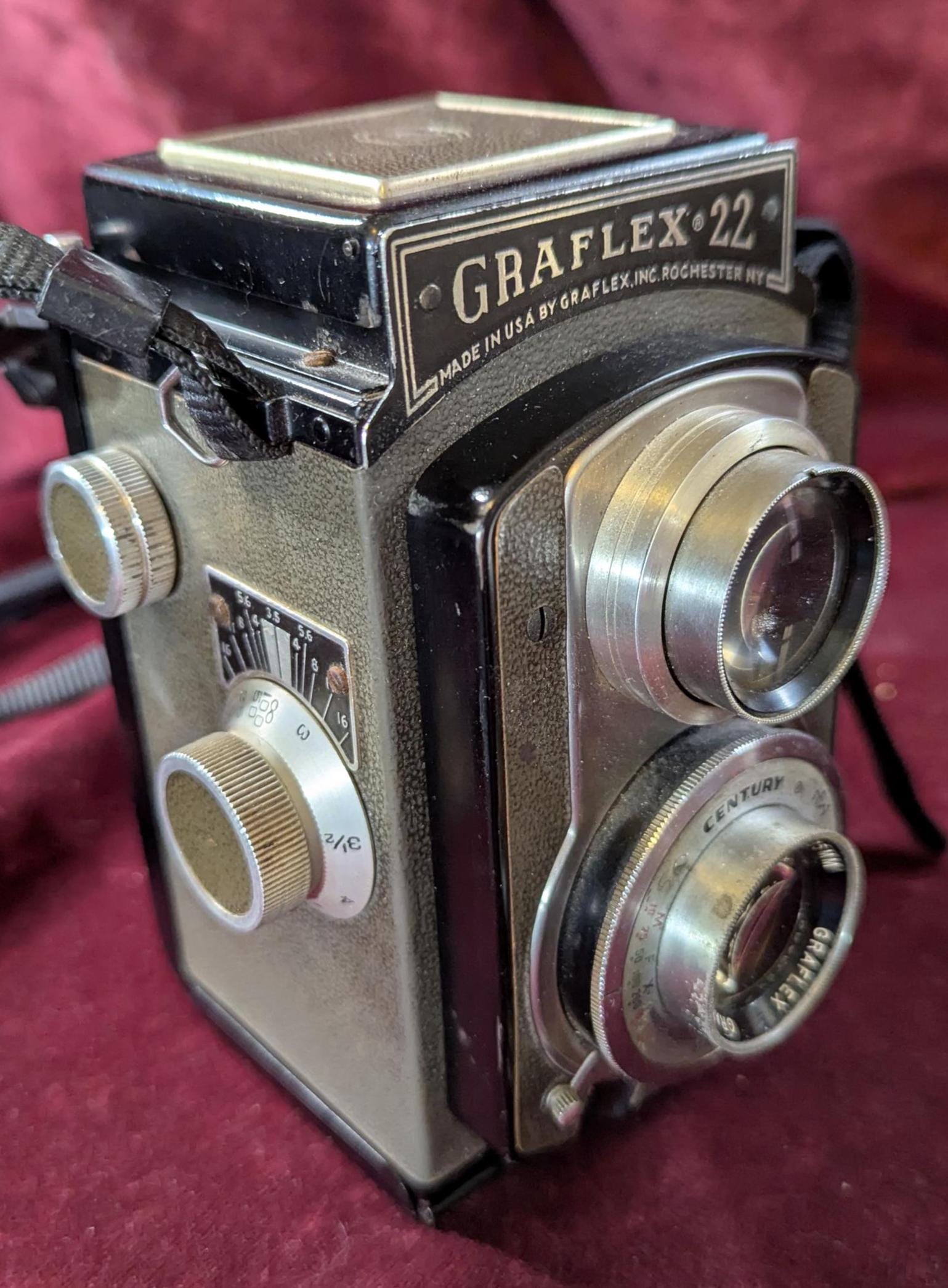 Antique Graflex 22 TLR Camera: 6x6 Film, Graftar 85mm Lens, Original Case