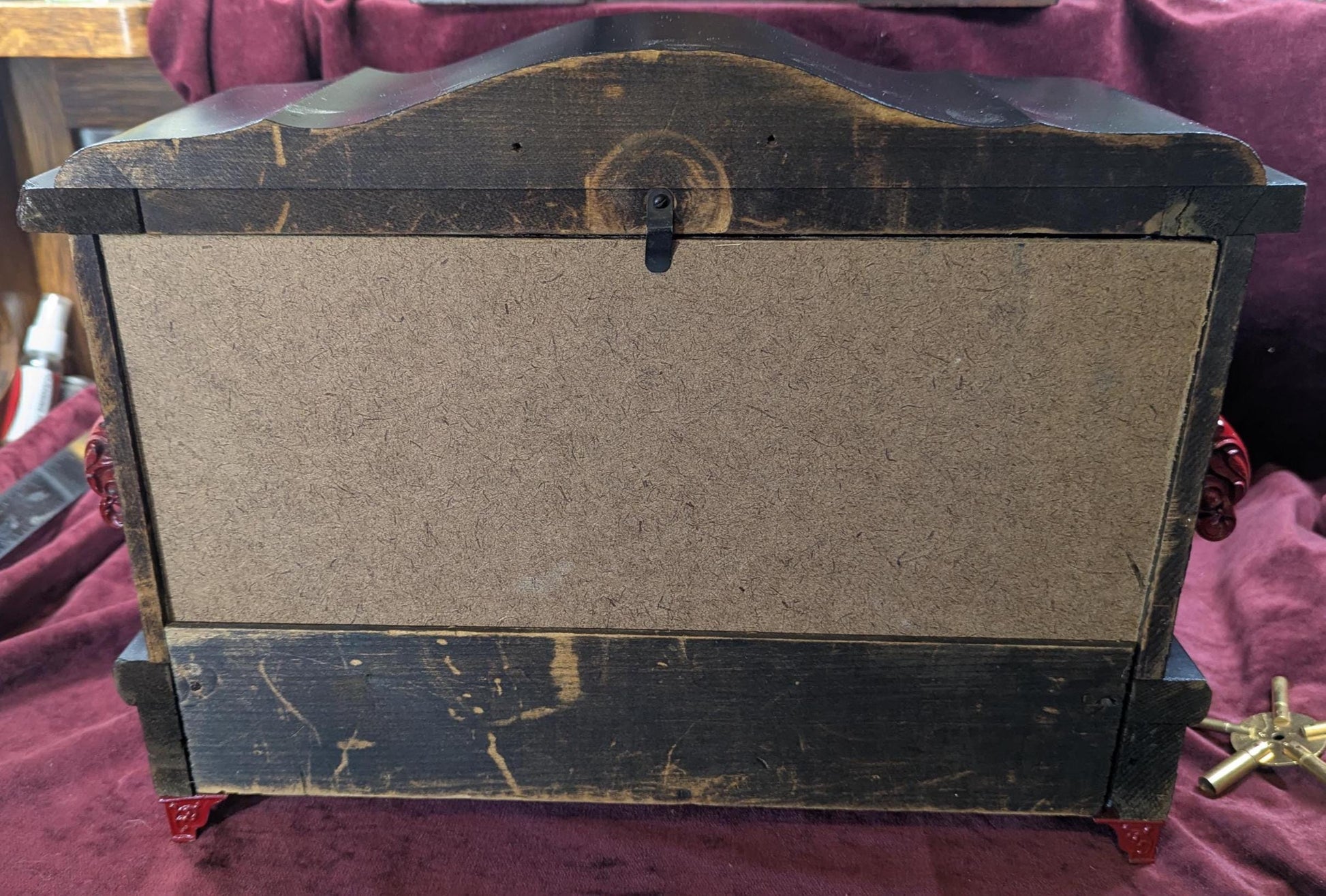 The clock has light wear to the exterior but in overall good condition. There is a new back board I put on to tone down the sound and keep out dust. Please see all the photos for what you're getting. The winding key that ships is a universal for many clocks.