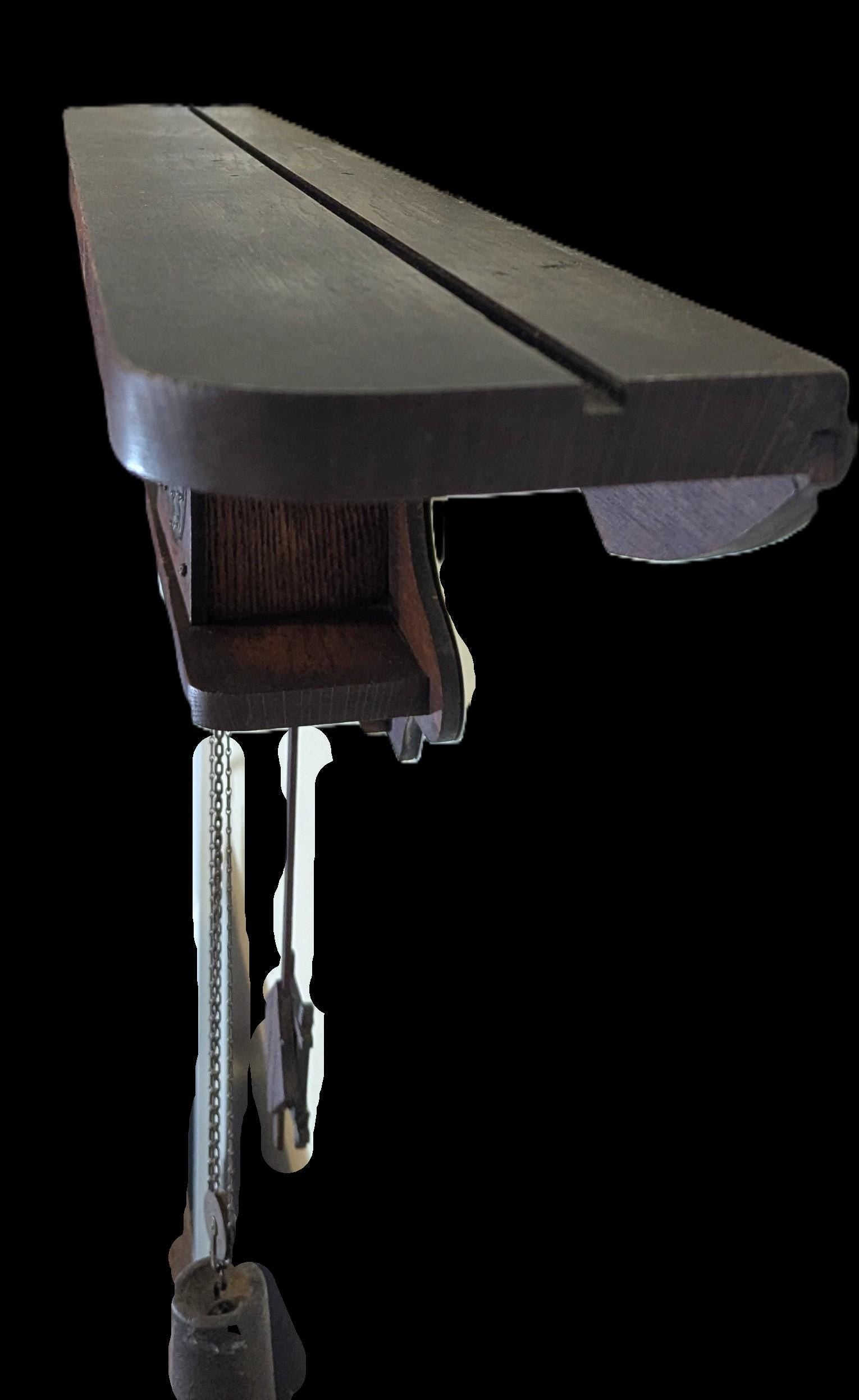 The clock is crafted from a combination of veneer wood, boasting a rich brown color that complements its antique mission style era. Overall the wood is in very good condition. Screws match the period as well. The movement appears original due to the style and weight used (included with the clock). The pendulum appears original (restored to working condition by me) to the time as well.