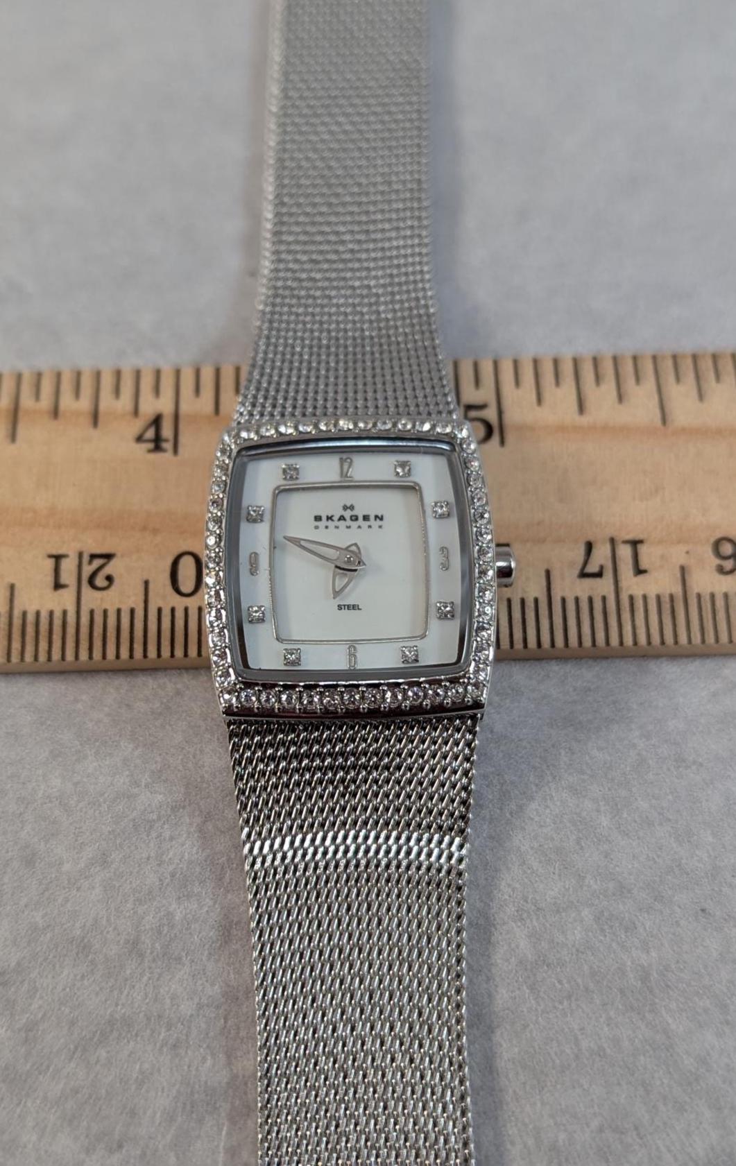 Skagen Mother of Pearl Crystal Watch: Stainless Steel Bracelet