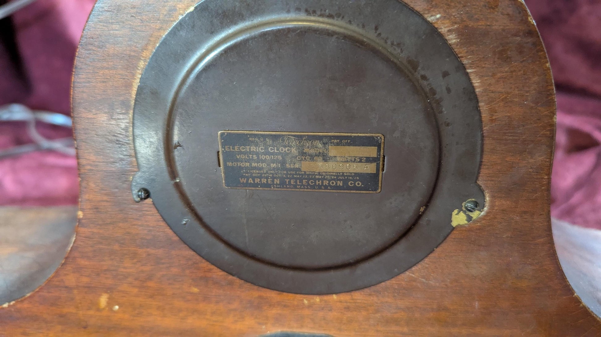 Condition is good to very good. Clock runs quietly, functions well and keeps good time. I've lightly oiled the internal parts. The case shows some aging (along the lower front edges as seen in photos) along with some scuffs and nicks for a nearly 100 year old clock.